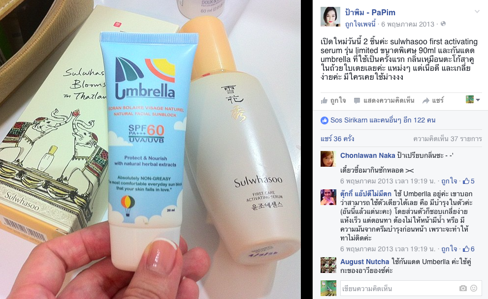 "เปิดใหม่วันนี้ 2 ชิ้นค่ะ sulwhasoo first activating serum รุ่น limited ขนาดพิเศษ 90ml และกันแดด umbrella ที่ใช้เป็นครั้งแรก กลิ่นเหมือนตะโก้สาคูในถ้วยใบเตยเลยค่ะ แหม่งๆ แต่เนื้อดี และเกลี่ยง่ายค่ะ มีใครเคยใช้ม่างงง"